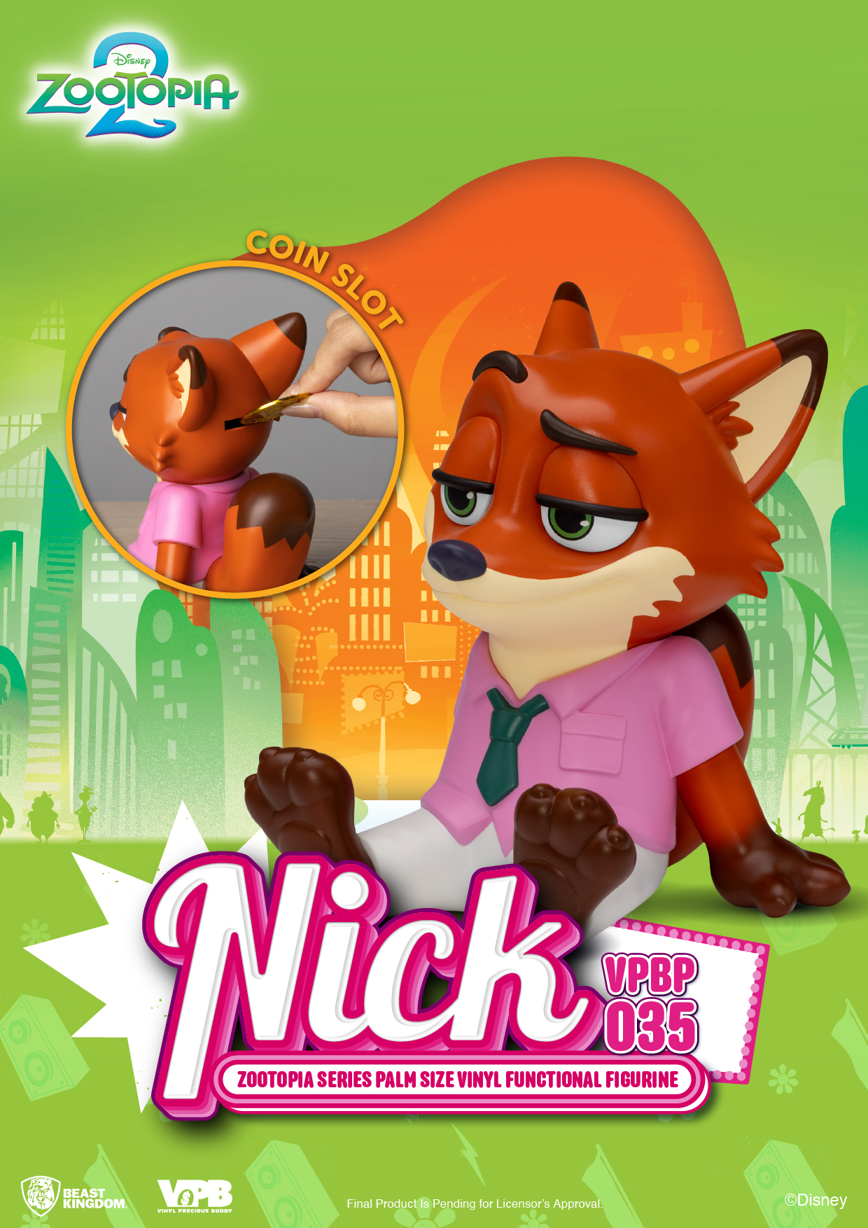Nick 穿著標誌性的粉紅襯衫與綠色領帶,慵懶挑眉的神情搭配俏皮火紅大尾巴,雙手自然支撐身後,散發出從容不迫的魅力。完美還原他「嘴賤卻可靠」的角色精髓,讓人一見就愛上!