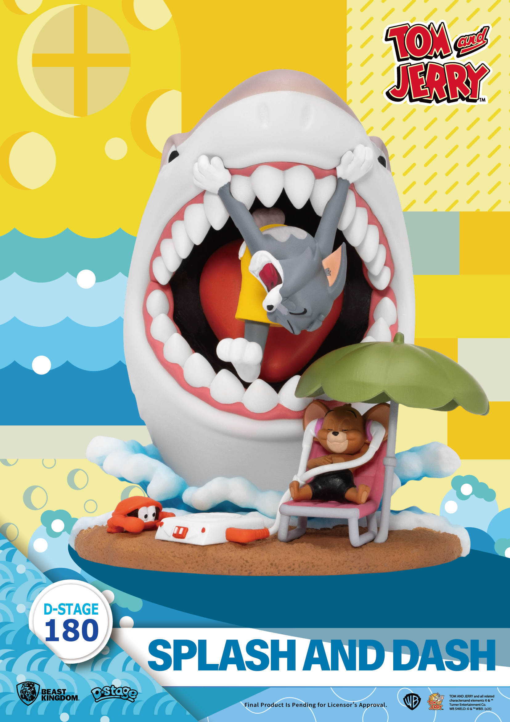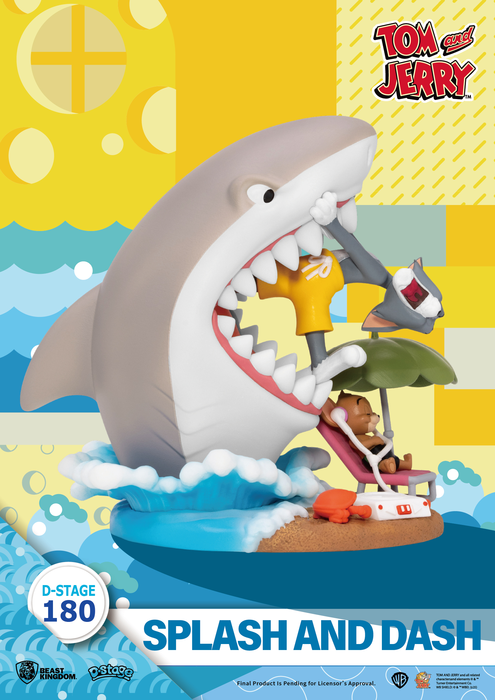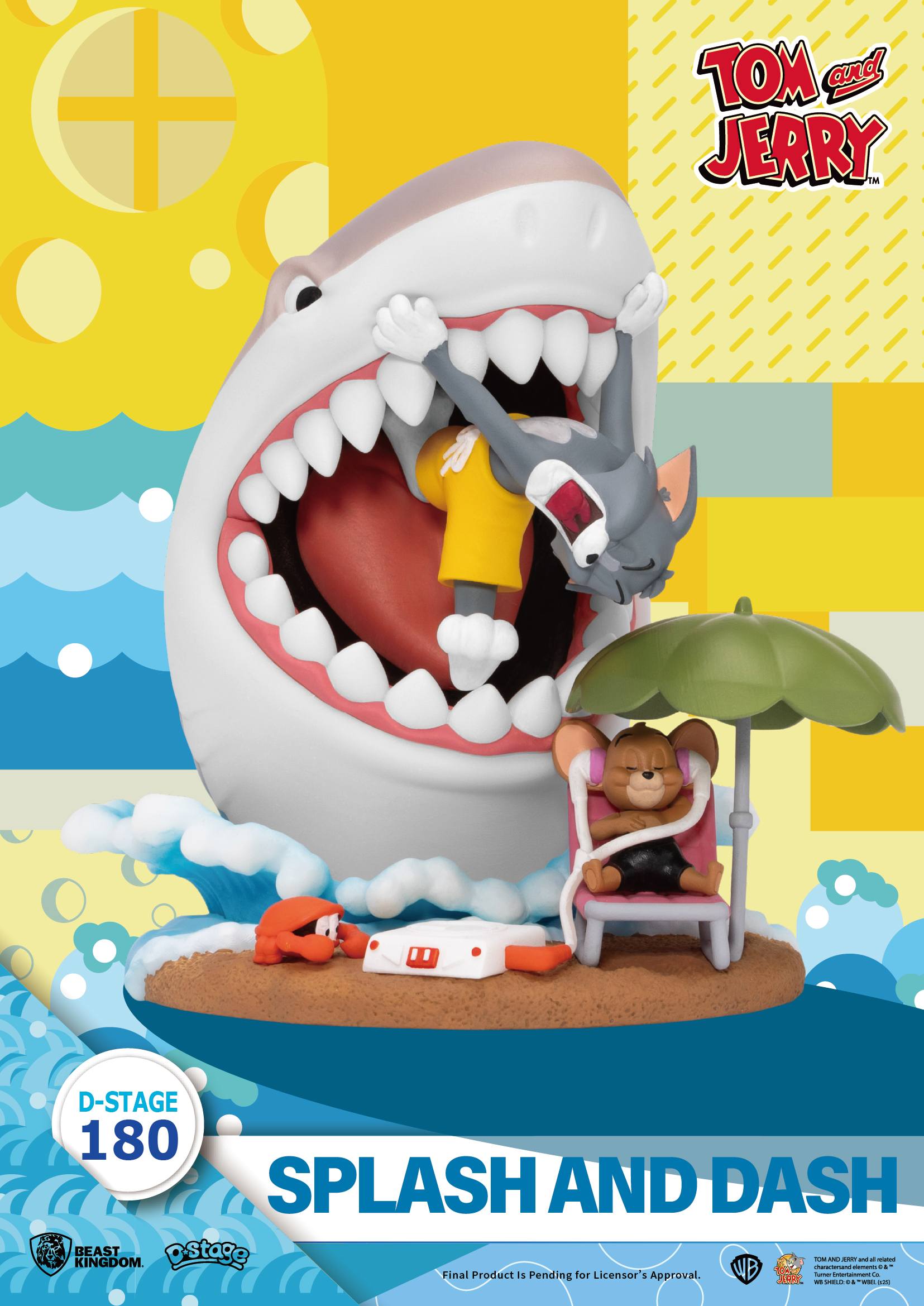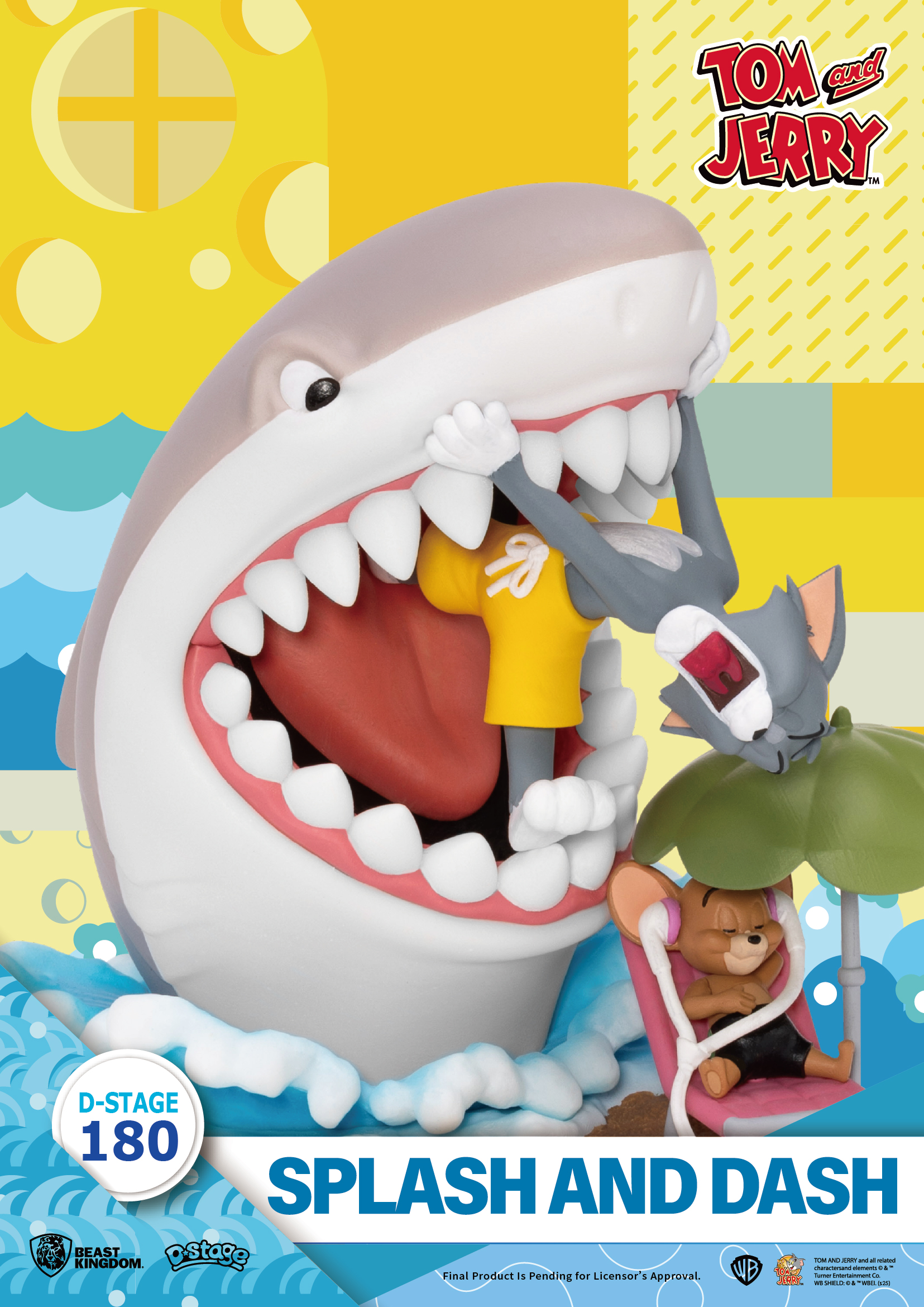 作品以鮮明色彩重現海浪、沙灘與巨鯊血盆大口,誇張又搞笑的場景設計,把 Tom & Jerry 最經典的鬧劇完整重現。