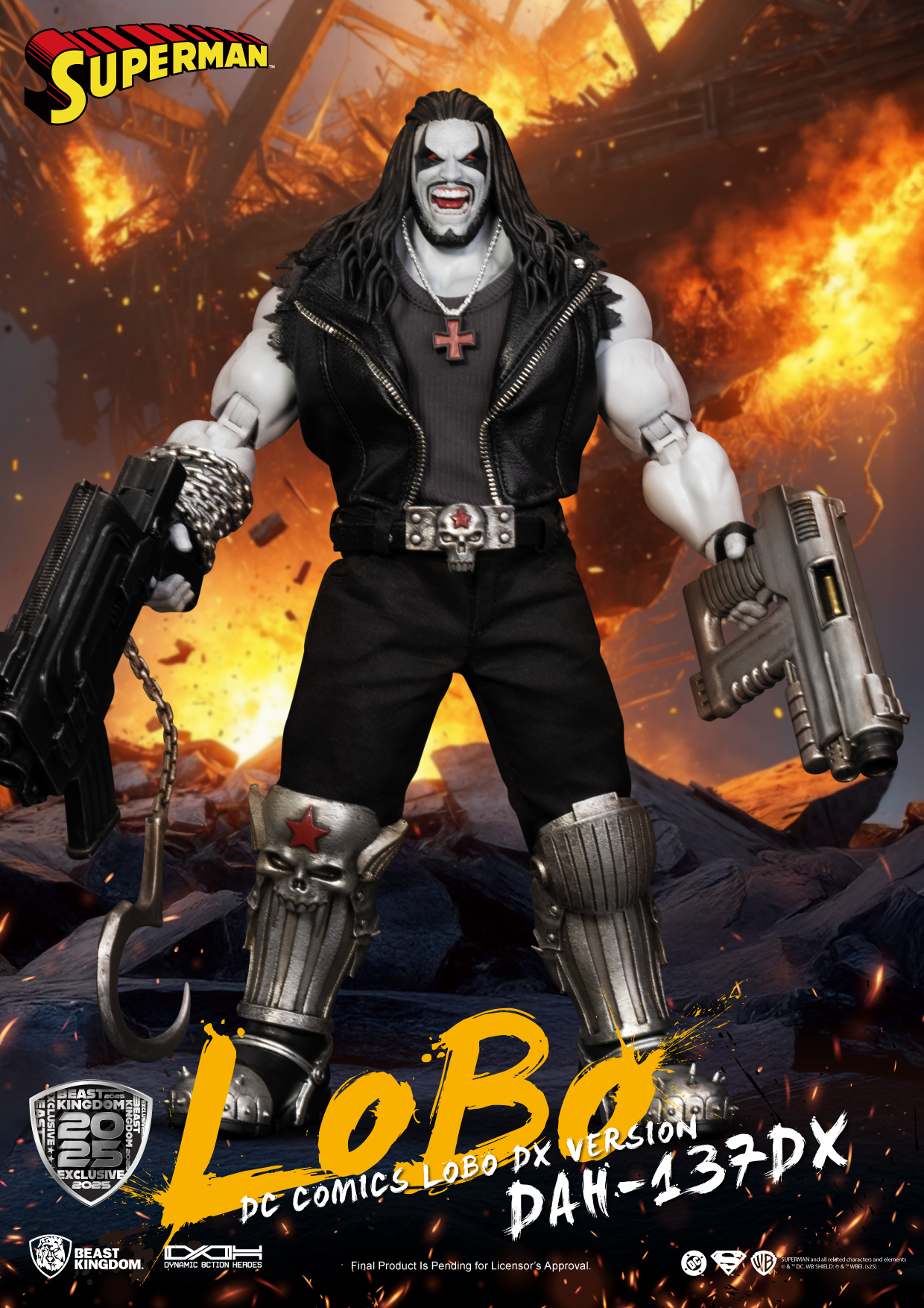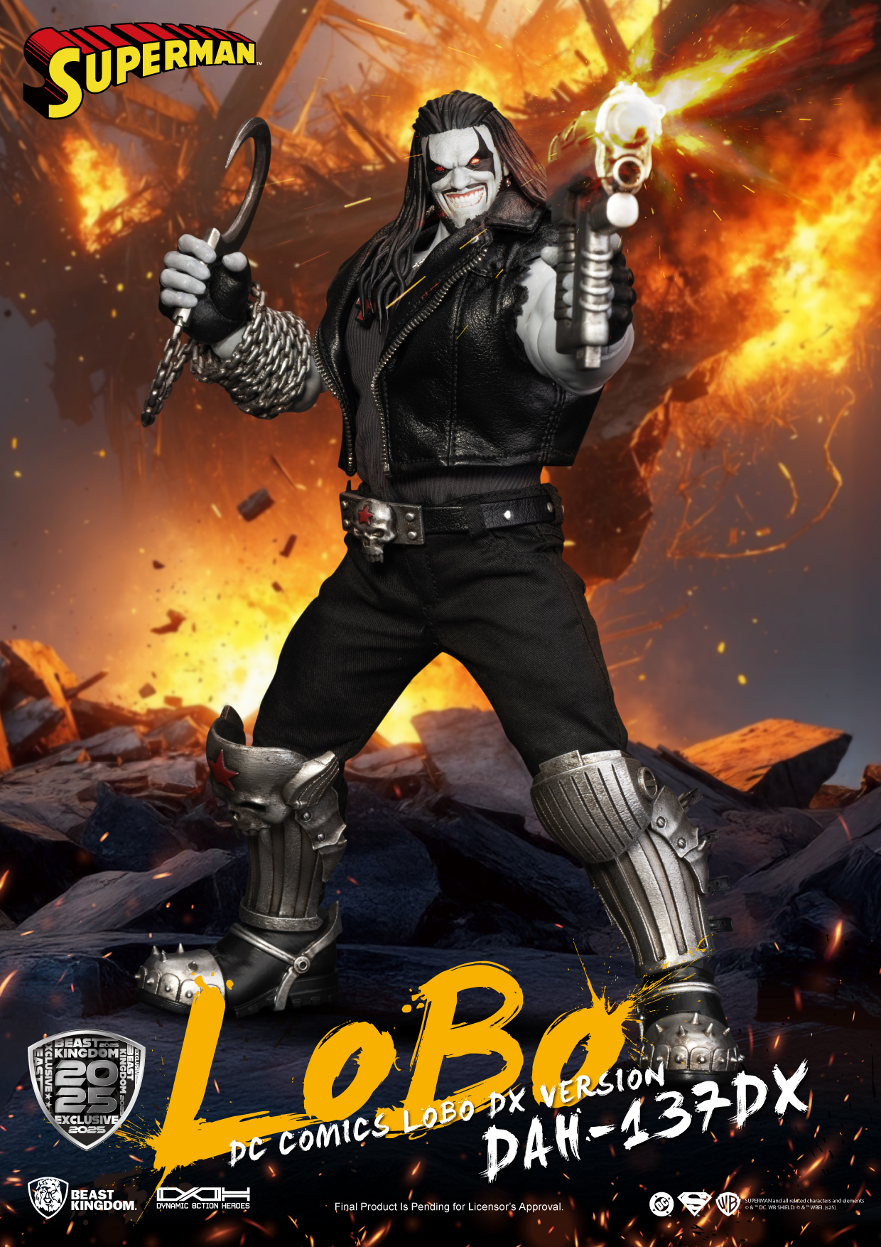 DC 漫畫中最具個人特色的星際反派 「爆狼」(Lobo),霸氣降臨野獸國 Dynamic 8ction Heroes(DAH)系列!本次推出的豪華版可動人偶,結合 22 處可動關節 與高規格雕塑工藝,忠實再現這位宇宙惡漢的強悍體魄與張揚個性,讓人彷彿親身感受到他桀驁的氣場與戰鬥時的壓迫感。
