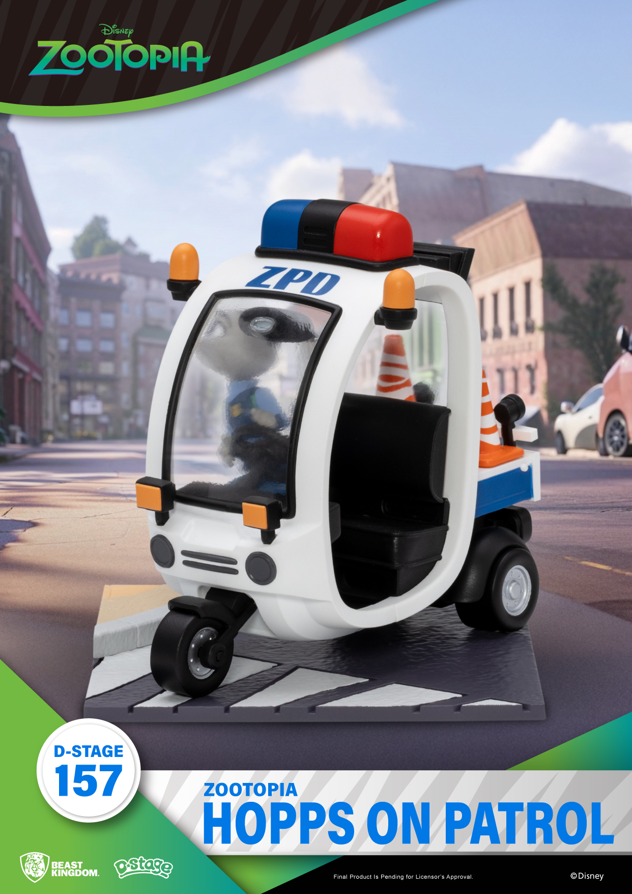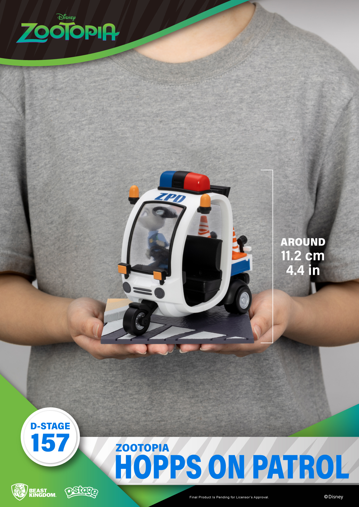 作品完整還原茱蒂在城市街頭執勤的畫面,小巧的三輪警車上裝滿交通錐與警燈細節,車身塗裝鮮明亮眼;茱蒂神情自信,準備再次用行動守護城市和平。