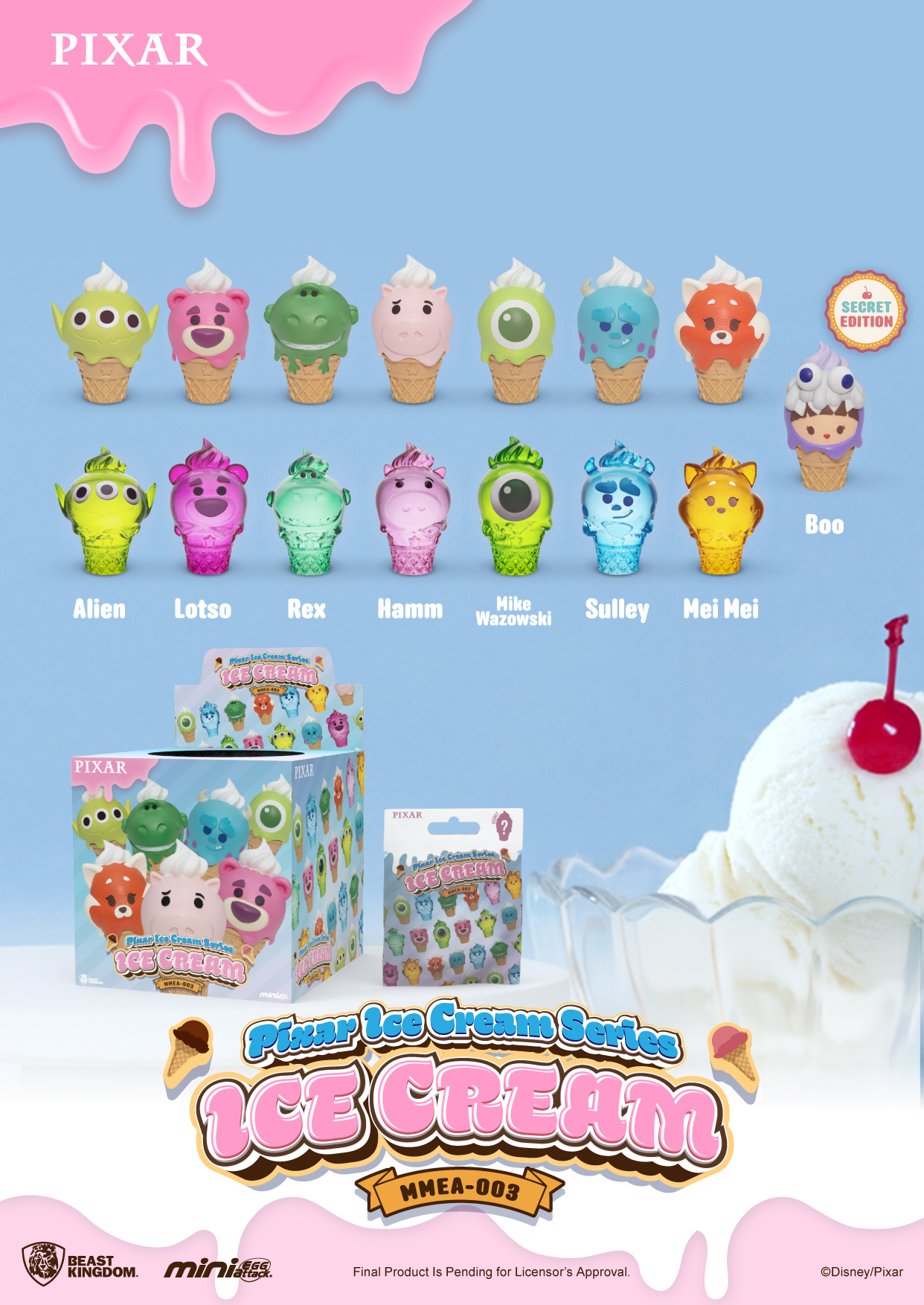 野獸國「Mini Mini Egg Attack」萌粒系列甜蜜再升級!全新推出【皮克斯冰淇淋系列】,將皮克斯人氣角色化身為甜蜜可口的冰淇淋造型,圓潤比例搭配甜筒底座,萌度瞬間爆表,一秒將童年回憶變成夏日甜點~