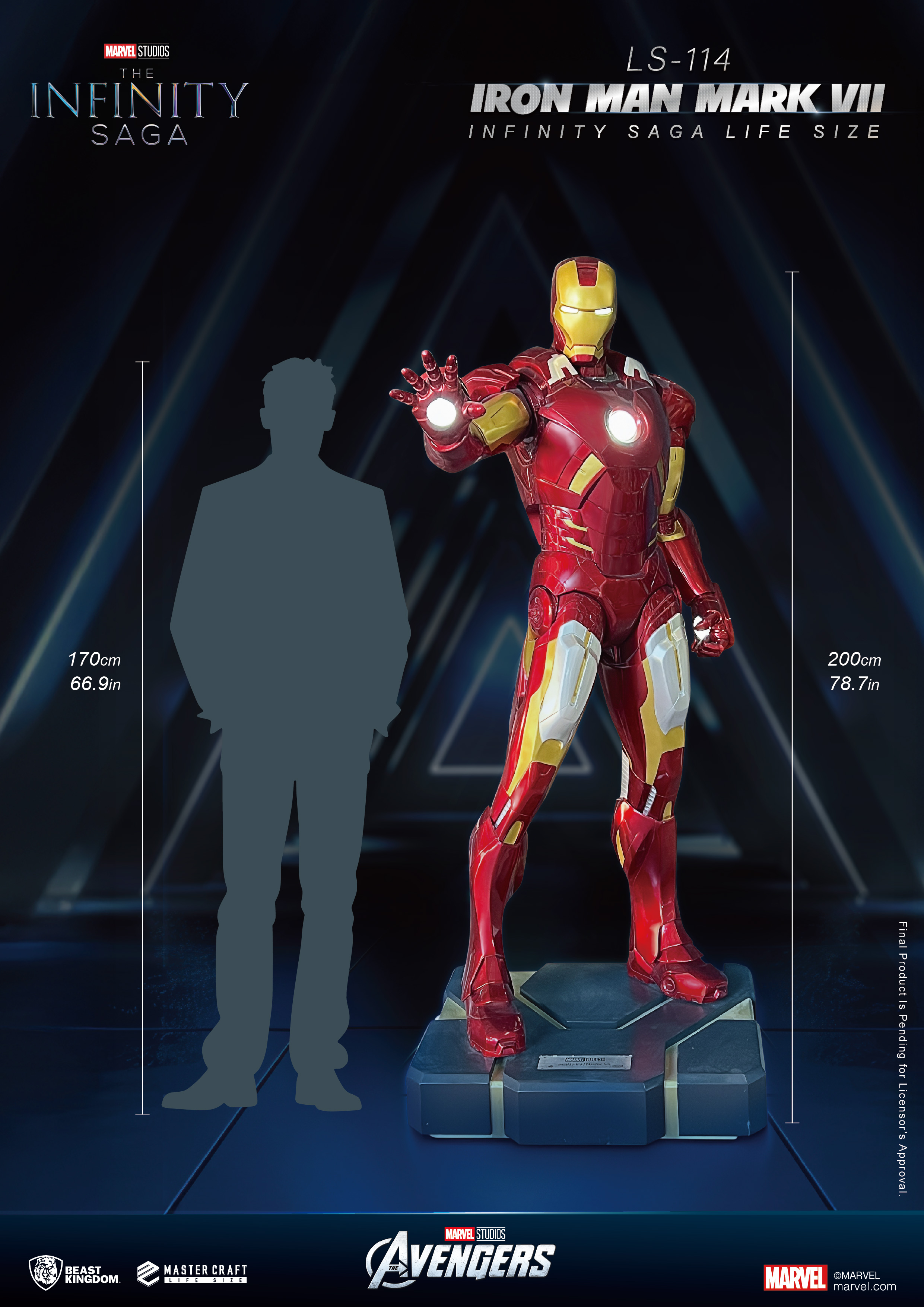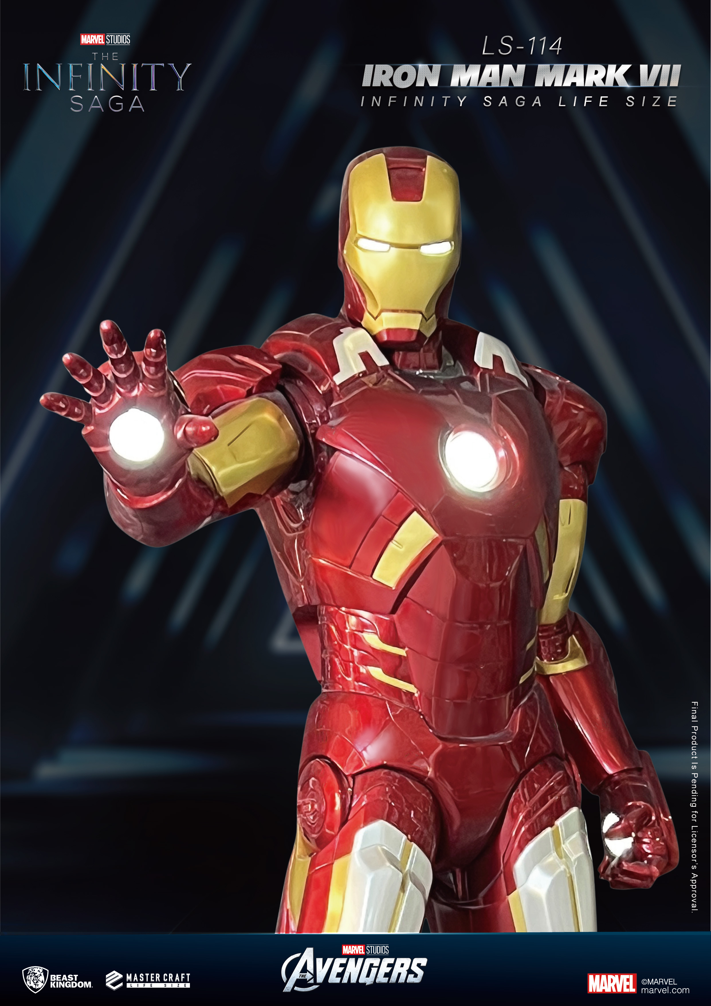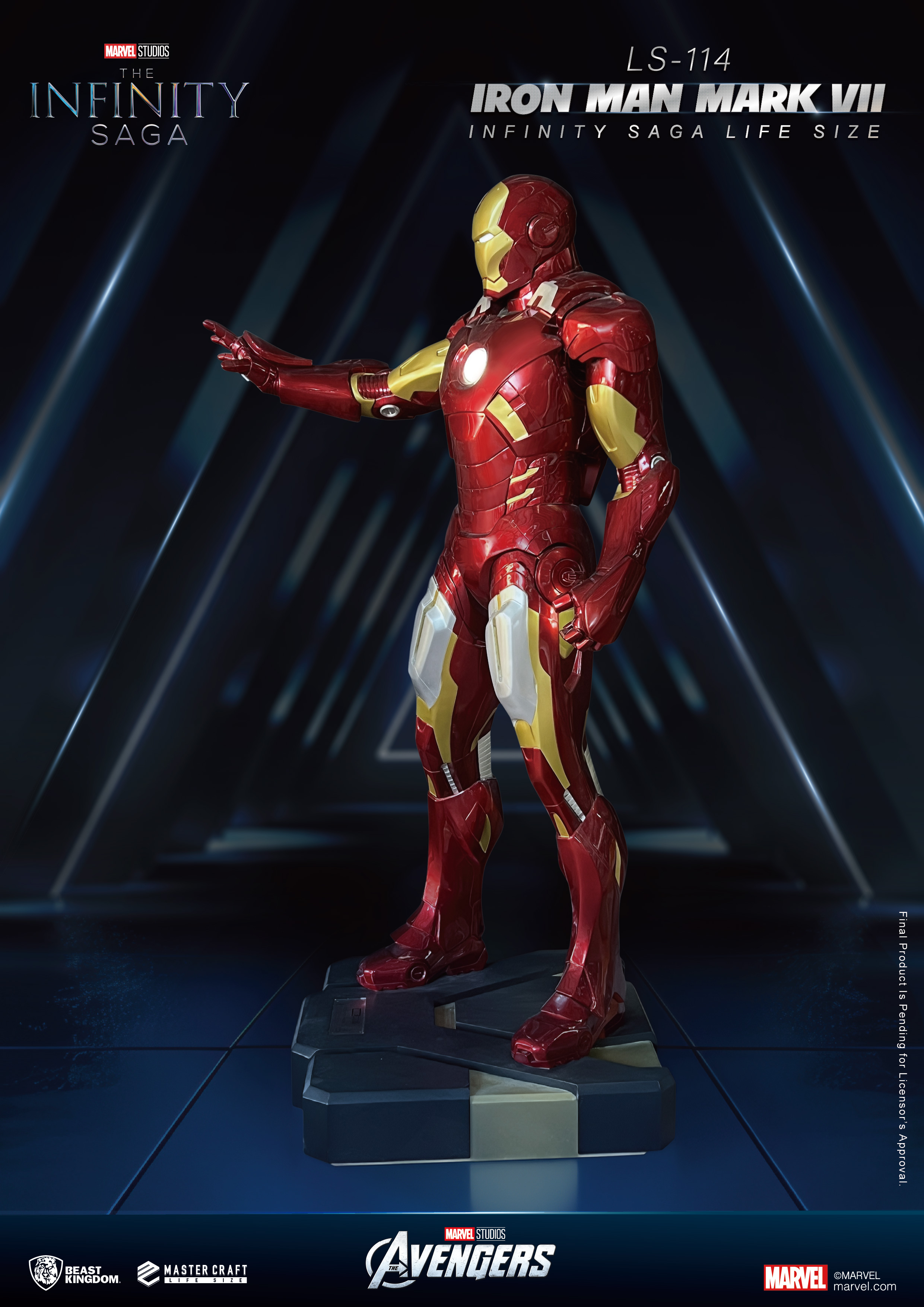 為了將這份精彩瞬間,以最震撼的形式呈現,野獸國隆重推出「LS-114 無限傳奇 Iron Man Mark VII 1:1 雕像」,以 Life Size 等身規格重現鋼鐵人進入戰鬥狀態的經典姿態。掌心能量砲蓄勢待發,胸口反應爐耀眼發光,完美定格紐約大戰中那一瞬間的英姿,彷彿下一秒就將再次衝入戰場。