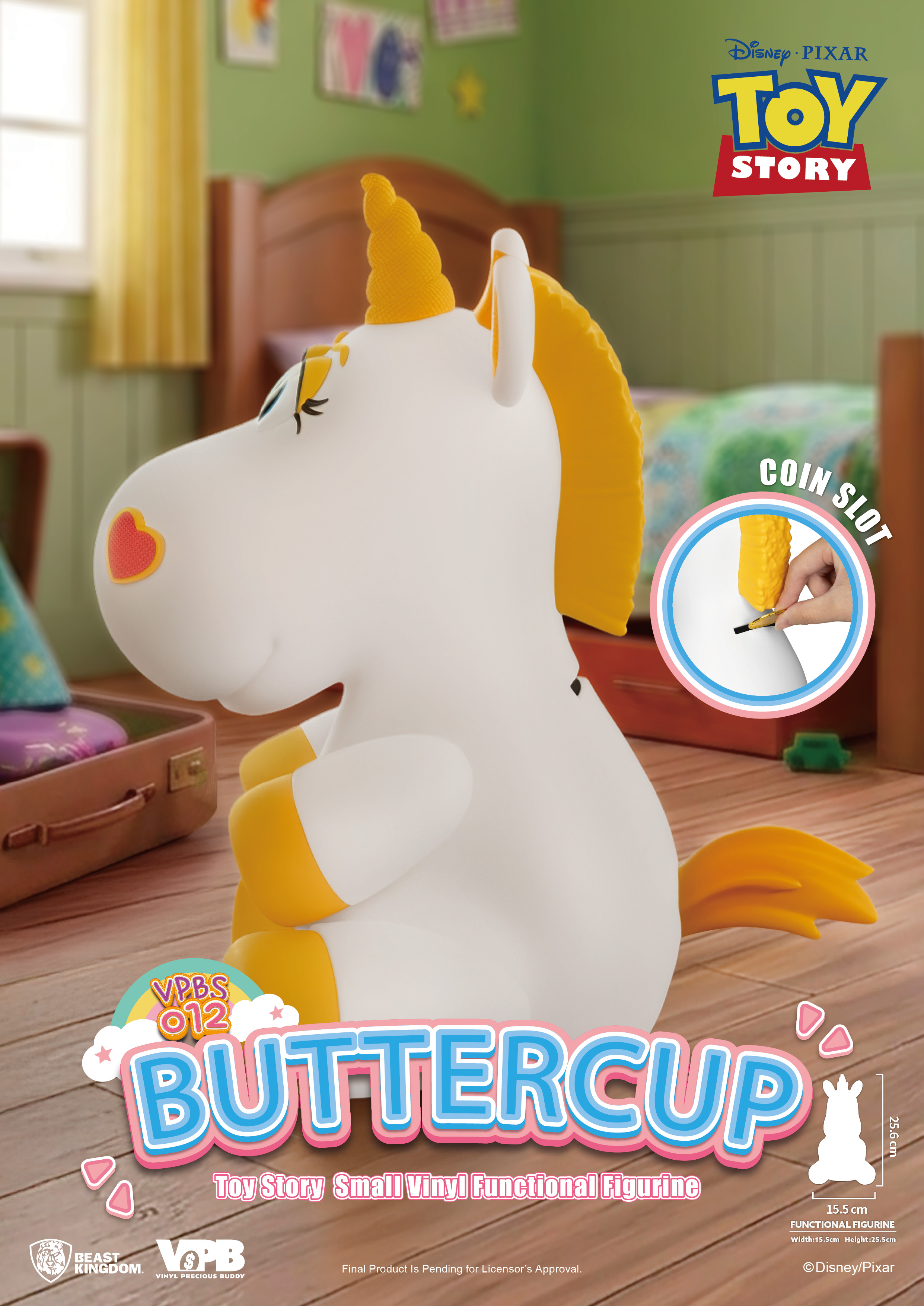 野獸國人氣「Vinyl Piggy Bank」系列推出最新作品,以《玩具總動員》系列中的小奶油為主角,將這位擁有白色身體、金色獨角、鬃毛與尾巴的經典角色,化身為Q版造型公仔。整體以圓潤坐姿呈現,搭配招牌大眼、愛心臉頰與柔和配色,完整還原小奶油溫柔夢幻的角色魅力。